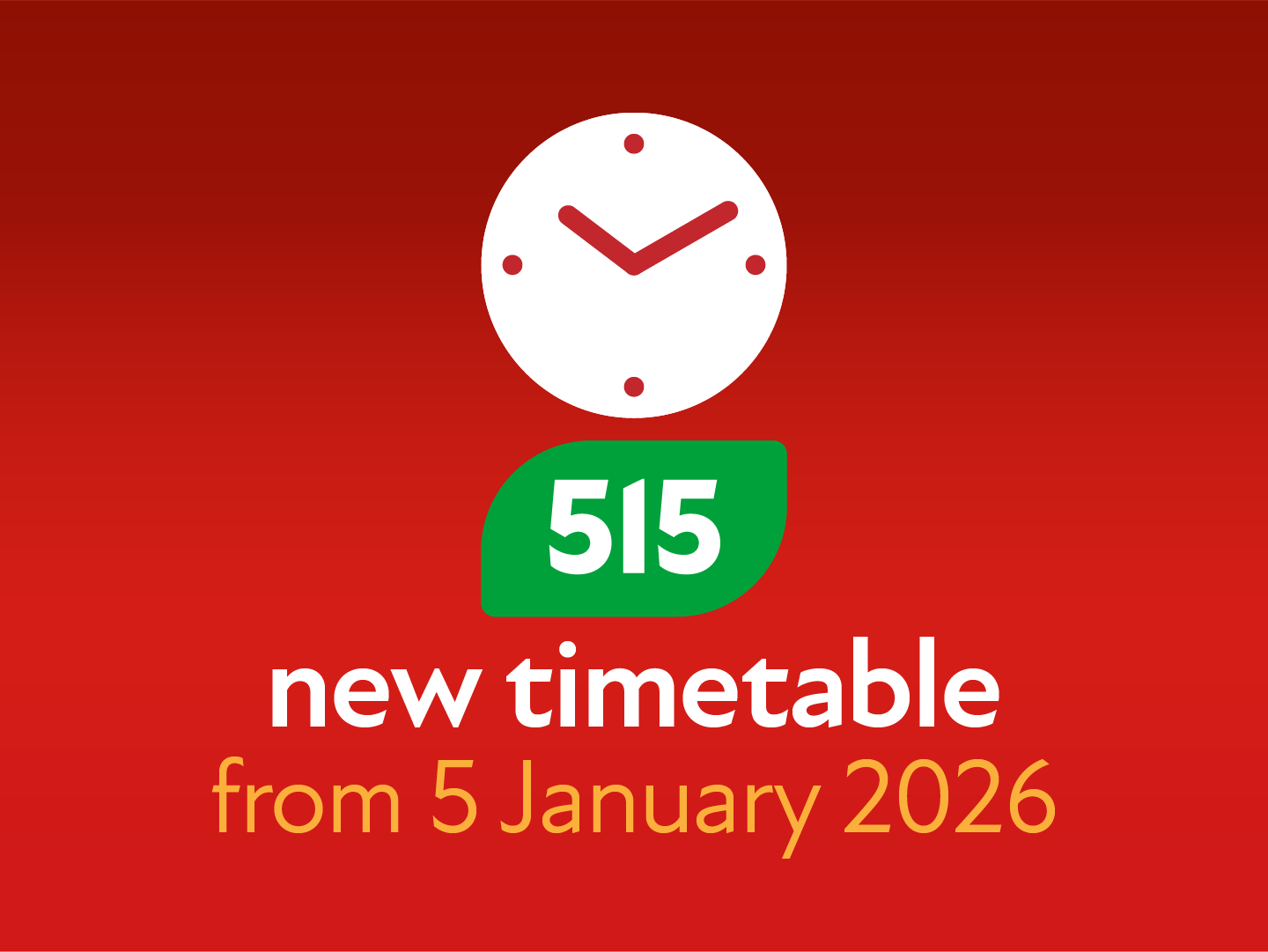 From Monday 5 January 2026 we'll be making some small changes to our timetable on route 515 to improve reliability.